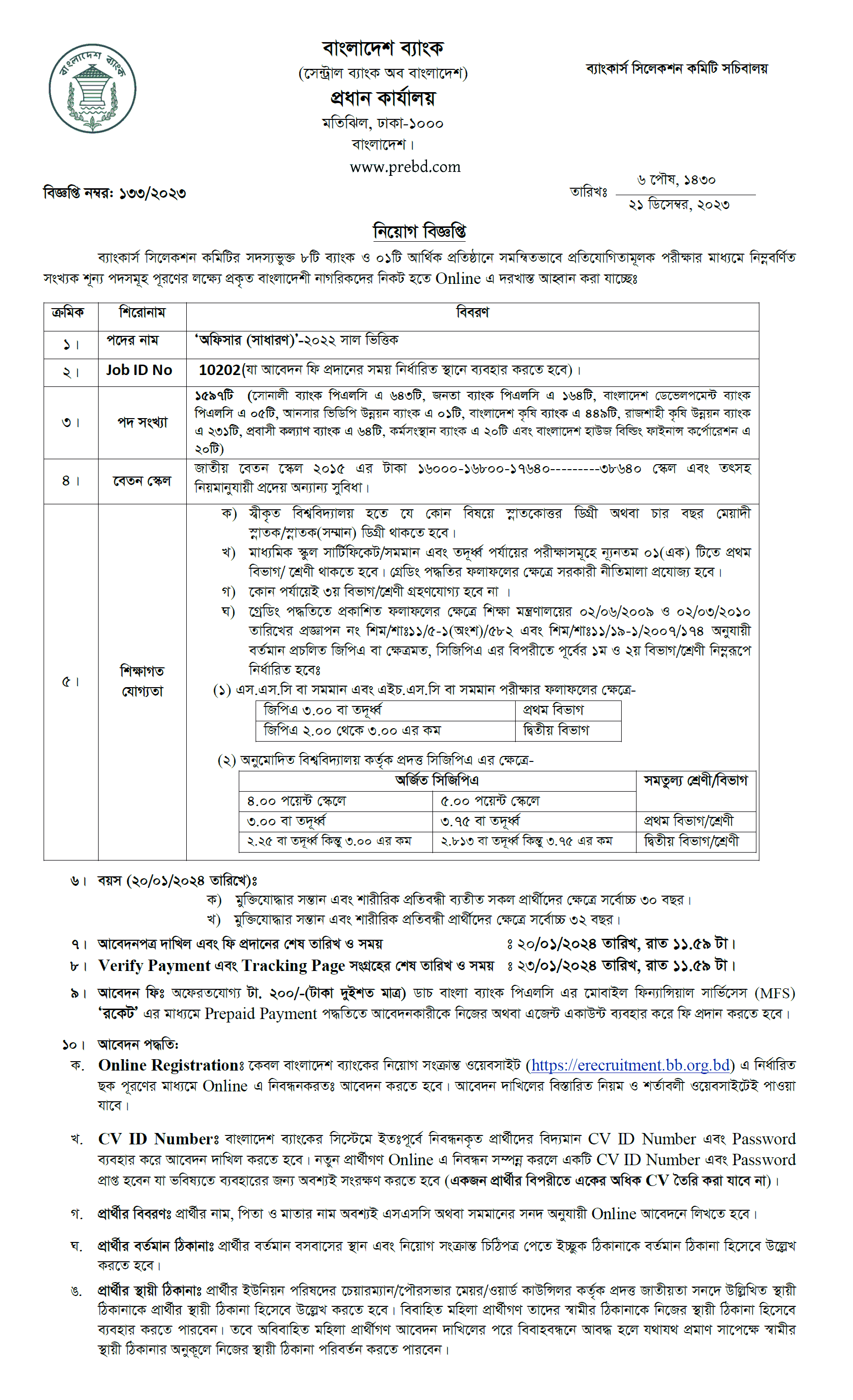 9 commercial banks under Bangladesh Bank Officer (General) job circular 2023. Combined 9 banks Officer (General) have published on BB erecruitment website erecruitment.bb.org.bd. This article depicts BB bank Officer General application requirements, total post, application process and other related information that are really helpful for job seekers.