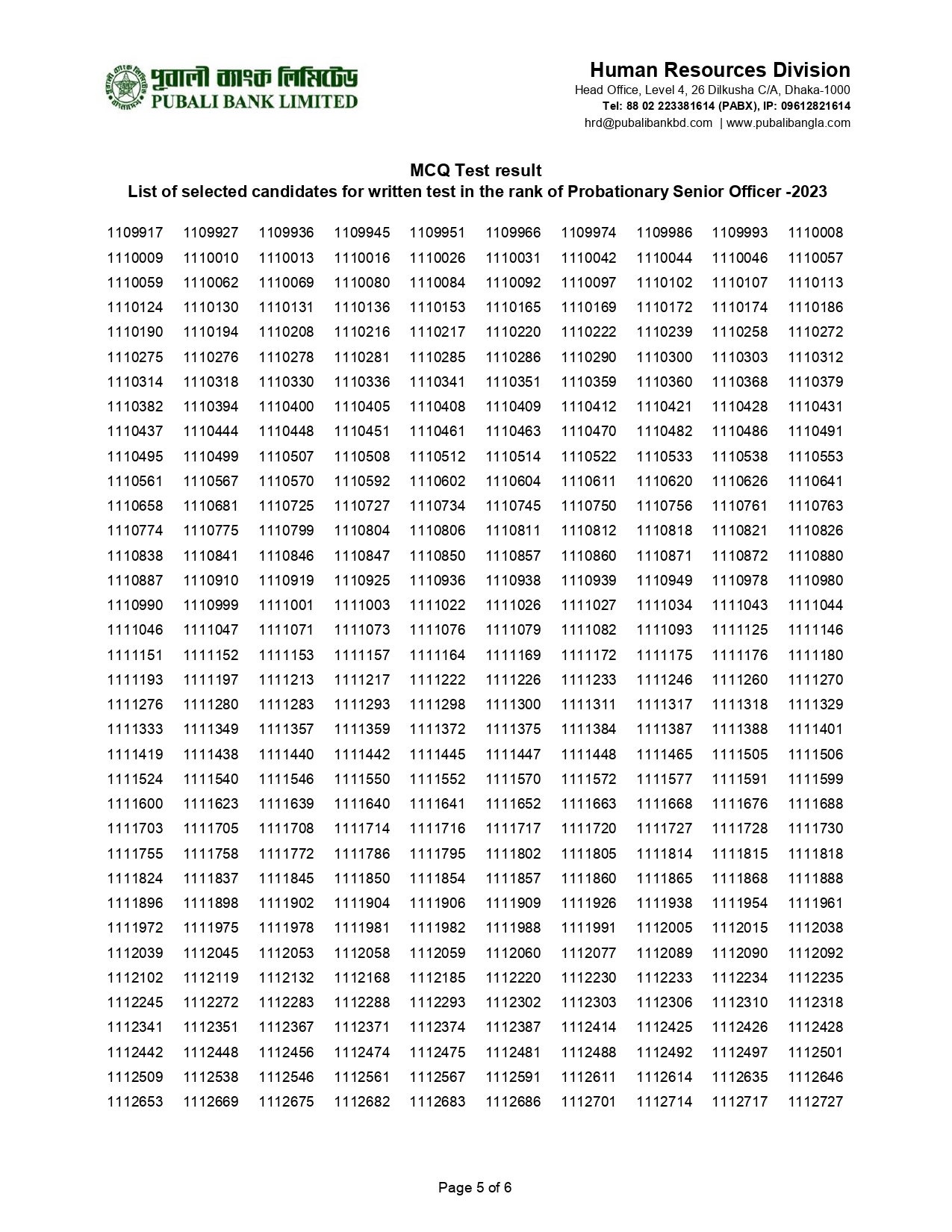 Pubali Bank Senior Officer Result 2023 |
